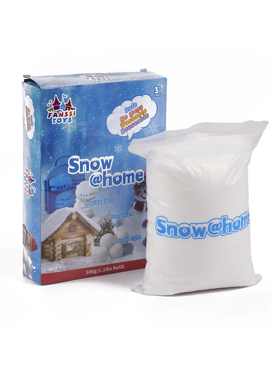В данном артикуле представлен снег весом 500гр. Он может быть самостоятельной игрушкой или куплен в качестве добавления к большим наборам с контейнерами для хранения и формочками, которые вы можете найти в нашем магазине.
