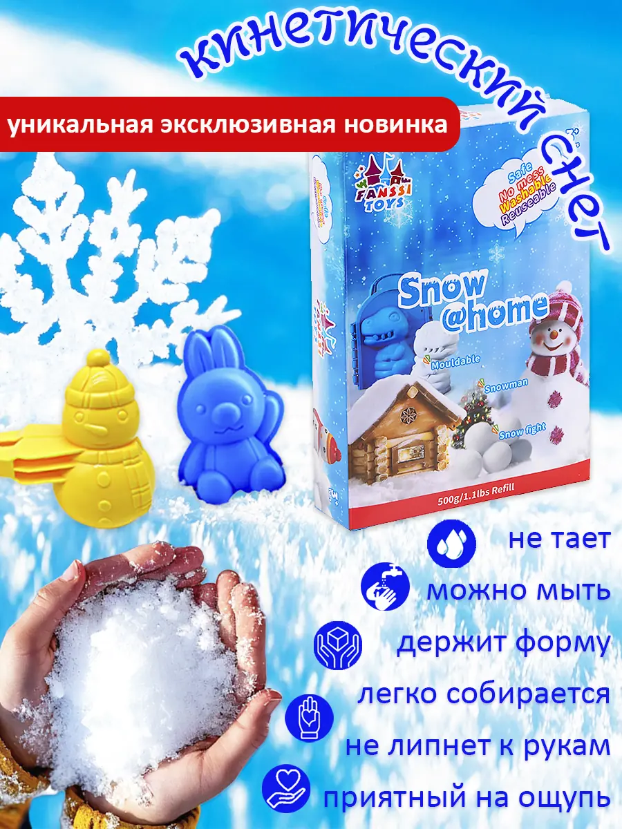 Искусственный кинетический снег, дарящий неограниченные возможности для зимнего творчества и игр, не выходя из дома и в любое время года.