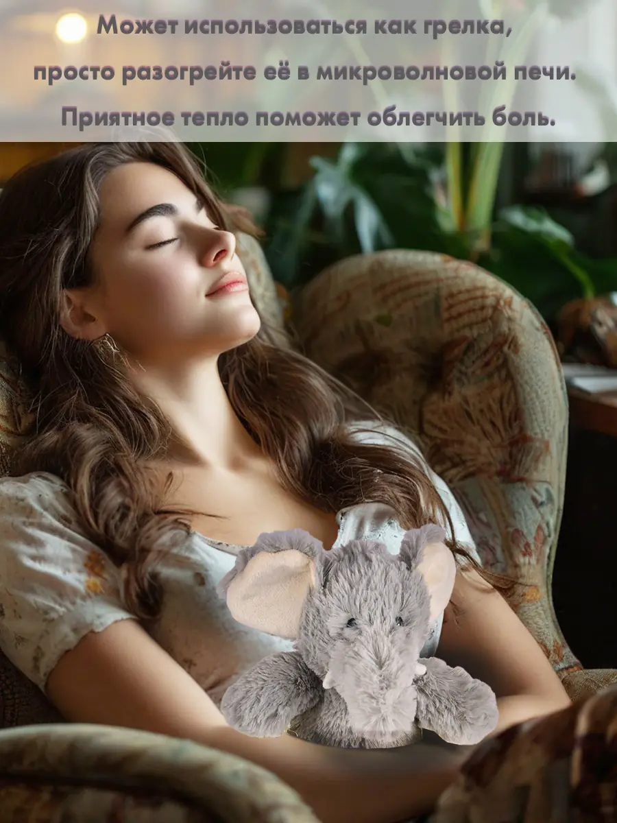 Игрушка может использоваться как грелка, просто разогрейте её в микроволновой печи. Приятное тепло поможет для облегчения боли в шее, плечах, коленях, спине.