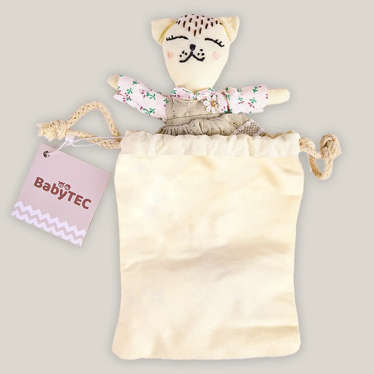 Я экологичная кошечка! Я сшита из 100% органического хлопка и набита гипоаллергенным синтетическим пухом.