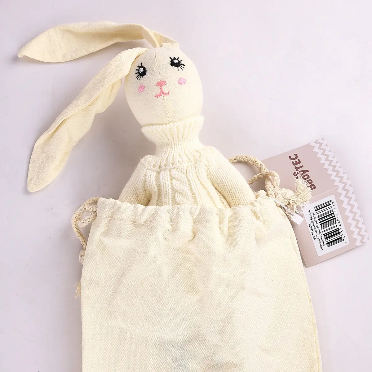 Мы экологичные зайчики! Мы сшиты из 100% органического хлопка и набиты гипоаллергенным синтетическим пухом.
