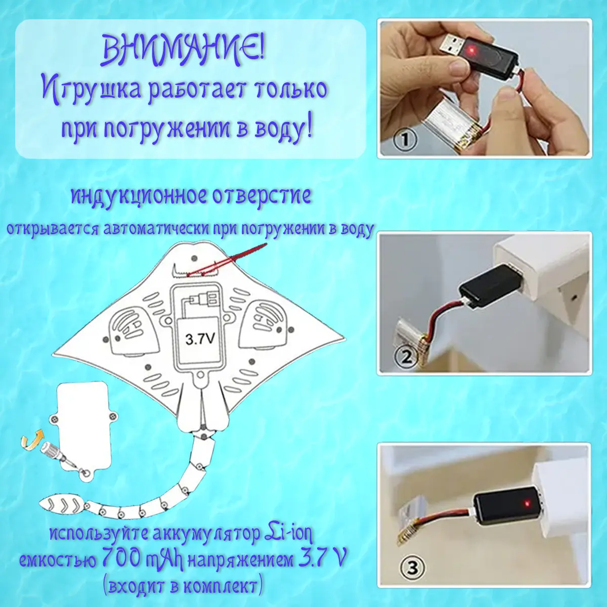 ВНИМАНИЕ! Игрушка оснащена датчиками воды и работает только в воде!