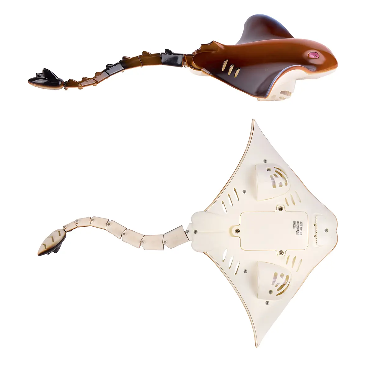 Запустите своего реалистичного ската на радиоуправлении! Наш скат оснащен двумя двигателями и гибкими механическими хвостовыми шарнирами, что позволяет ему плавать как настоящему скату.